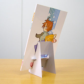 一般的なボードスタンドにはない「足」があるので、見本の同人誌などを両面テープなどを使わずに、そのまま置いて展示することができます!