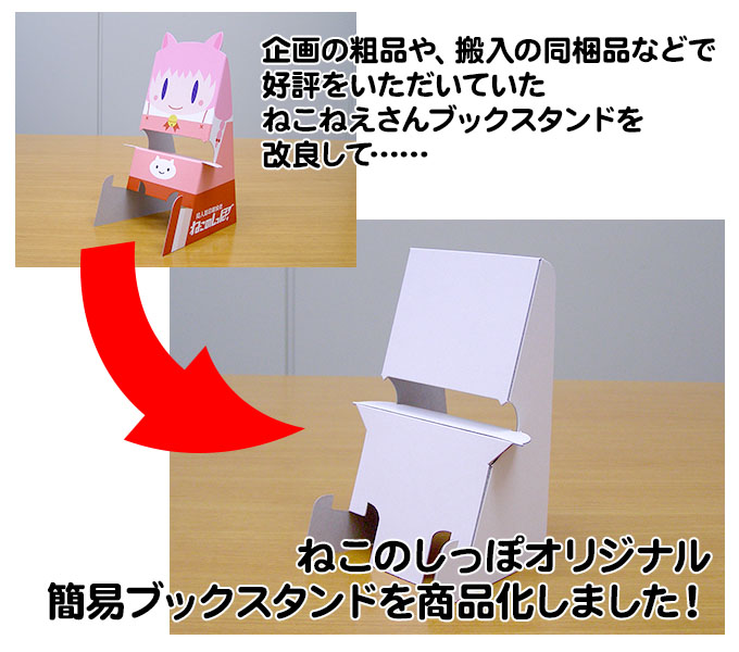 ねこねえさんブックスタンドよりも厚みのある紙を使うことで、より丈夫になりました!