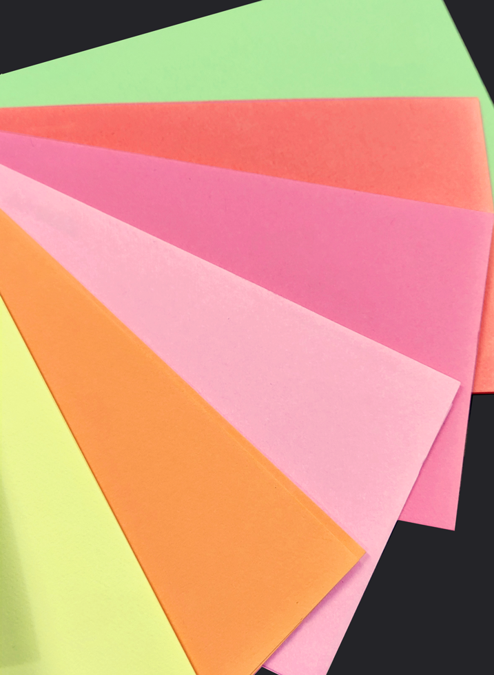 鮮やかな蛍光色が特徴の、環境に配慮したFSC森林認証紙です。
