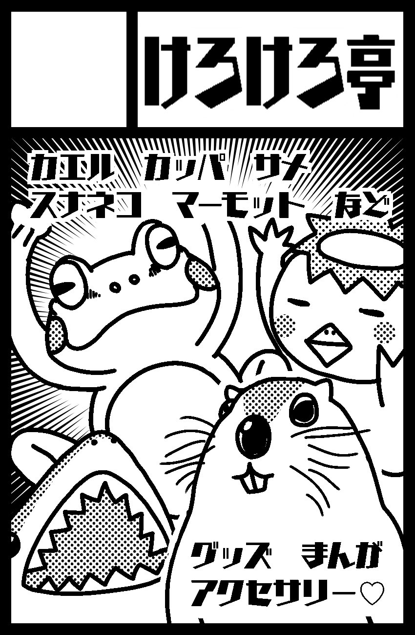 カエルとカッパ、サメやカワウソなど好きな動物を好きなだけ描いています。キモ可愛い(全力で褒めてます!大好きです!)マーモットグッズも色々あり(笑)お気軽に見に来て下さい~