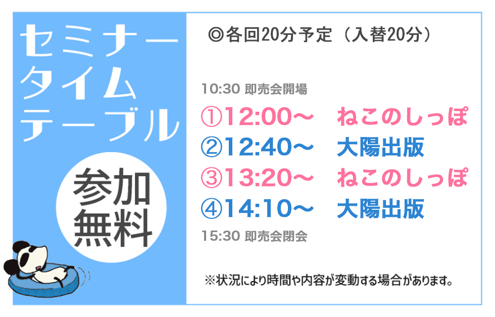 おなじみ「ねこのしっぽ」と「大陽出版」の 同人誌印刷会社2社が これから同人誌を作ってみたい方や、 作ったことはあるけどもっと同人誌を知りたい方に 向けたセミナーを開催します!