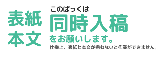 カラー口絵がある場合も同時入稿ですが、いずれか〆切の早い方に準じます。カラー口絵の〆切は「本文オフセット1色刷りの本」の本文用オプション欄をご覧ください。